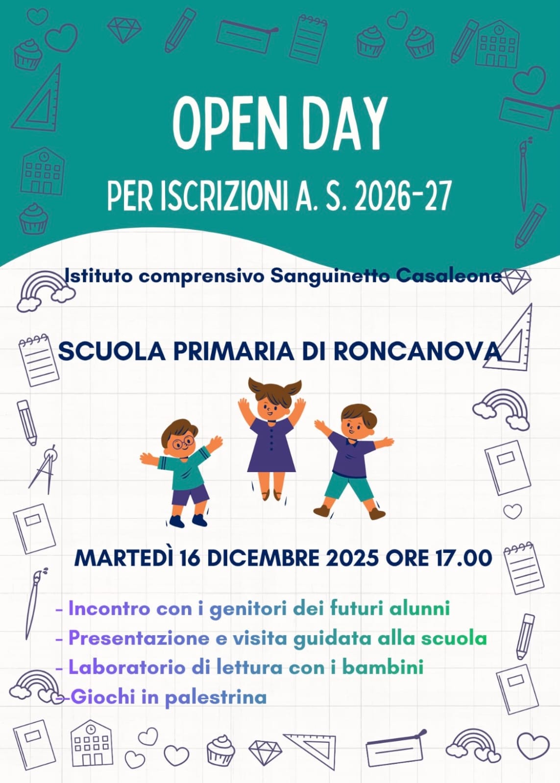 - Sportelli per informazioni su iscrizioni e servizi (mensa, trasporti, supporto allo studio)